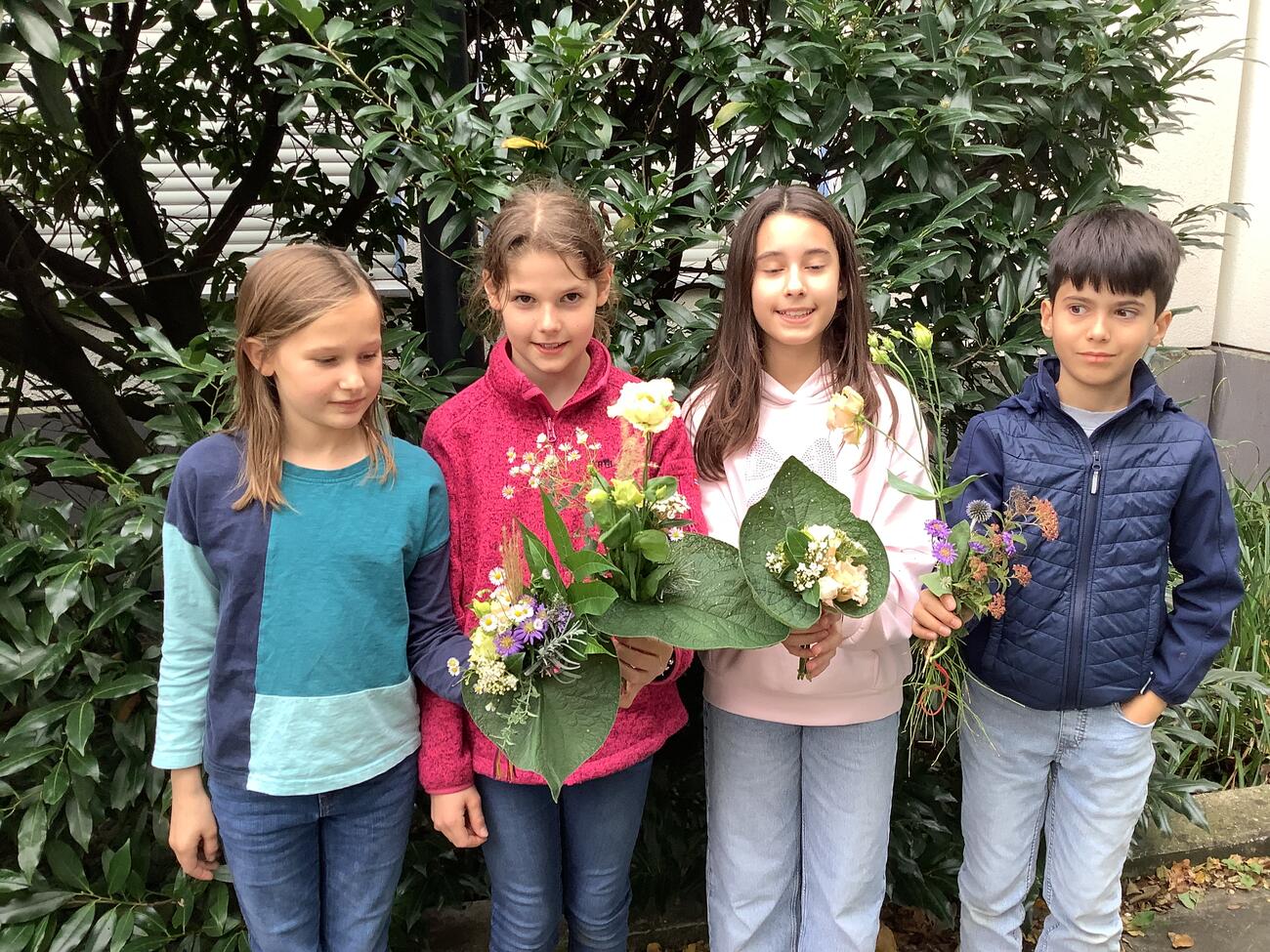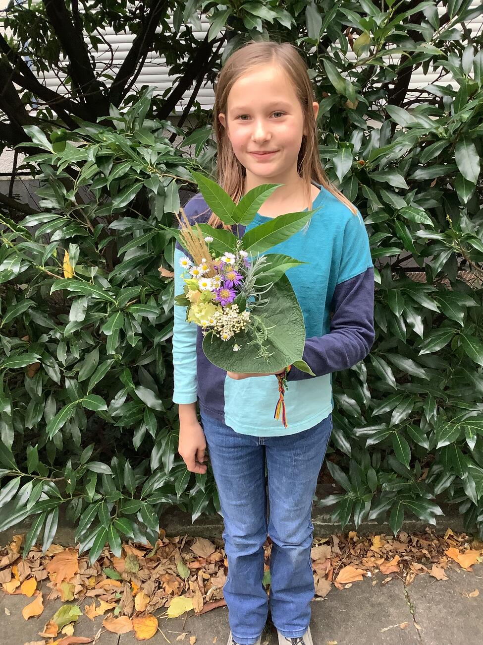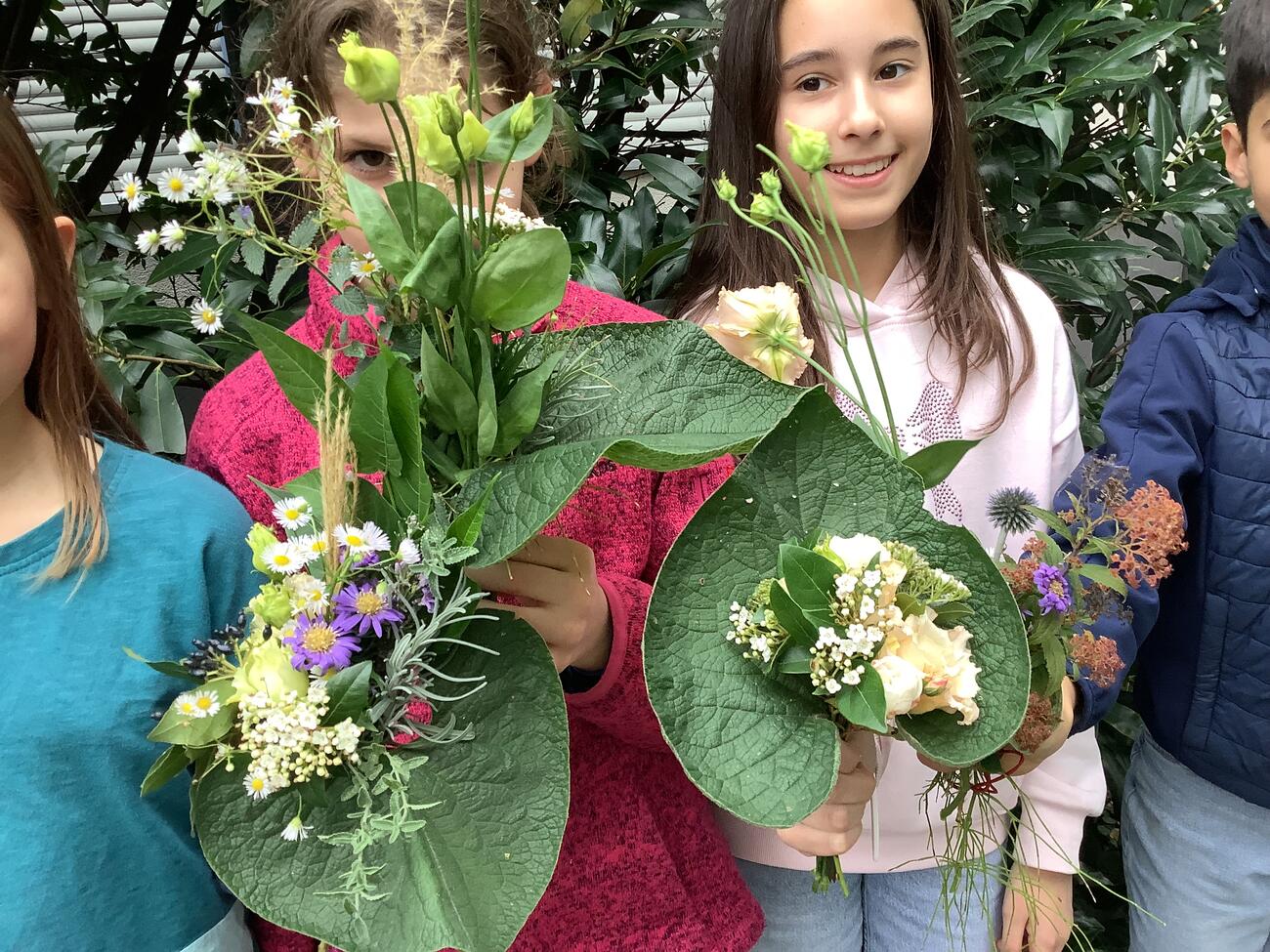 Zum Schluss durften wir unsere fertigen Sträuße mit nach Hause nehmen. Unsere Mütter haben sich riesig über die Blumen gefreut. Ich fand die Stunde richtig toll, weil ich gelernt habe, dass man auch selbst schöne Blumengebinde machen kann und dafür nicht mal Blumen kaufen muss.
