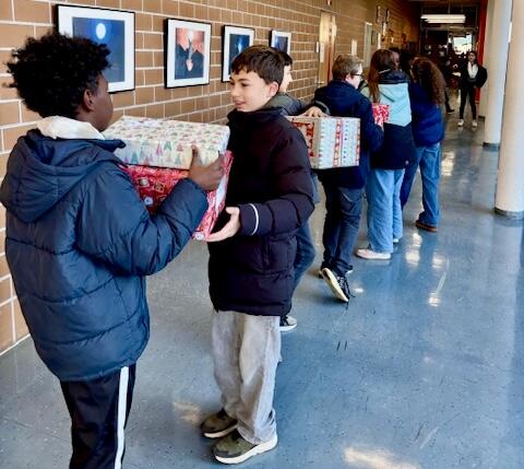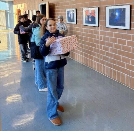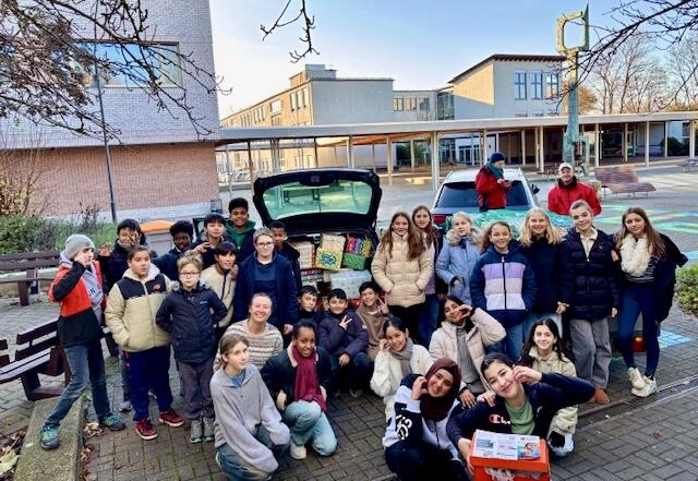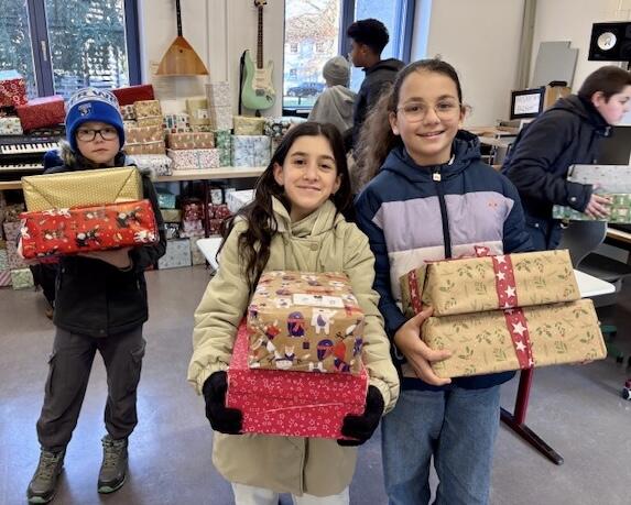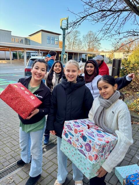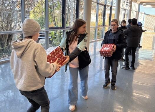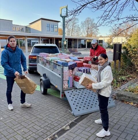 Die Klasse 6d durfte beim Verladen der Päckchen helfen. Mit strahlenden Kinderaugen wurden die liebevoll verpackten Geschenke für den Weihnachtspäckchenkonvoi auf den Weg gebracht.