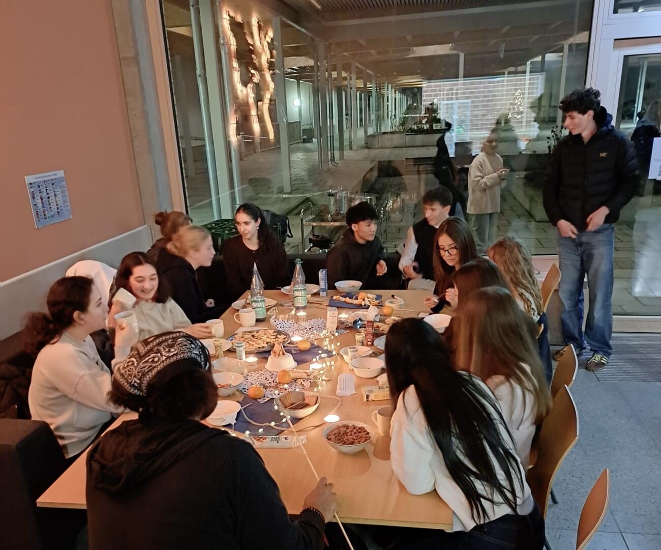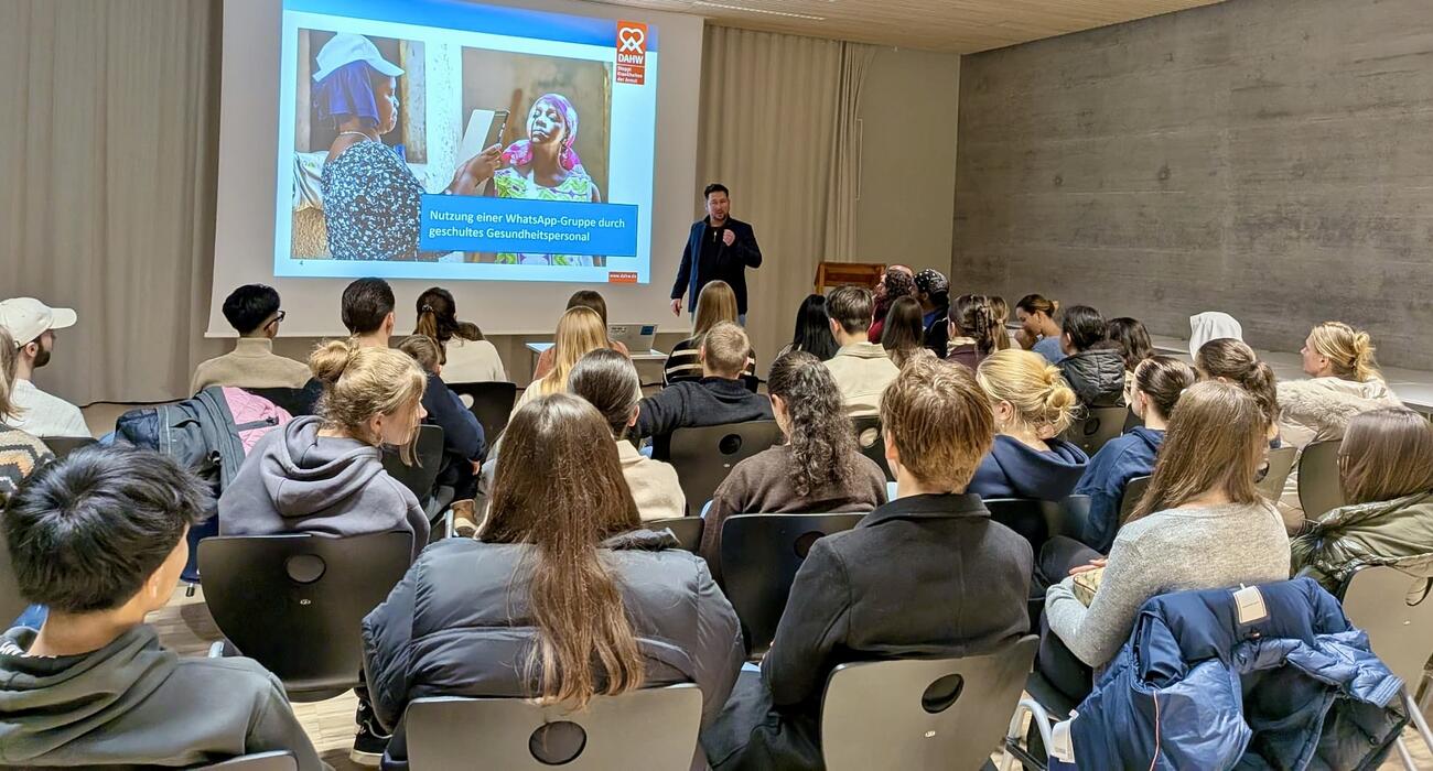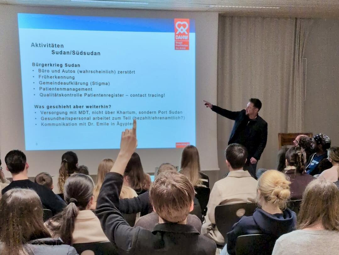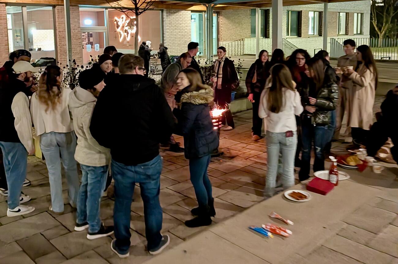 Gute Bildung ist wichtig. Aber was ist mit den Problemen, der Ungerechtigkeit und der Armut der Welt? „Da kann man ja eh nichts machen.“ DOCH! Kann man. Und wie das geht, darüber berichtete der CEO der Hilfsorganisation DAHW, Patrick Georg, im Rahmen einer gemütlichen Weihnachtsfeier am 15.12.2025 hier bei uns am GMB. Die vom ehemaligen Mosbacher-Berg-Lehrer ins Leben gerufene Junge DAHW hatte Schülerinnen und Schüler des Mosbacher Bergs und der Gutenbergschule zu diesem Abend eingeladen. Es wurden bei Punsch am Feuer Würste gegrillt, Stockbrot und Marshmellows gebacken, Kekse verziert und viel über die Möglichkeiten diskutiert, unsere Welt durch ganz kleine Schritte ein bisschen besser zu machen.
