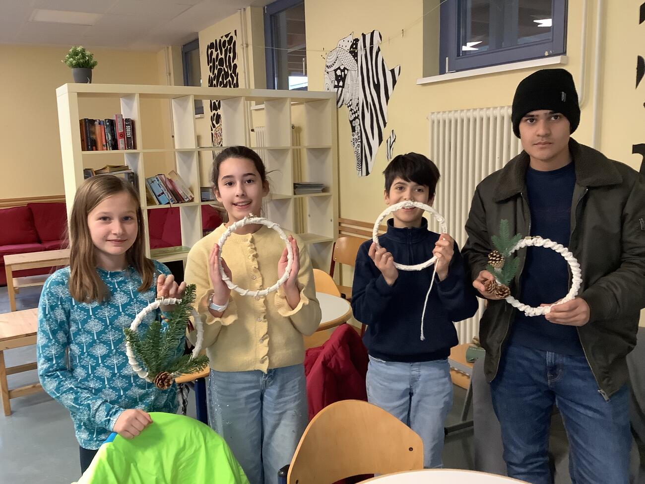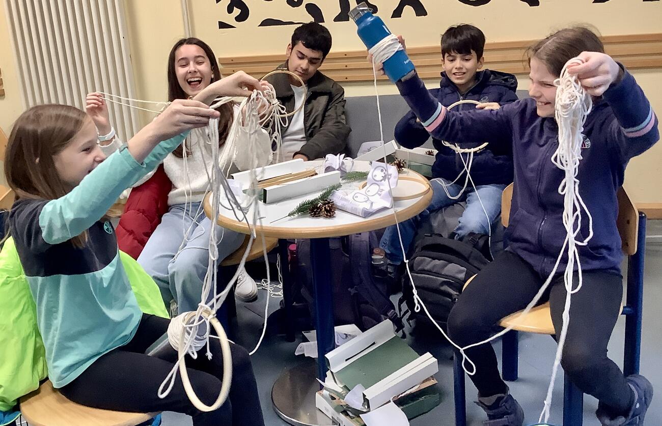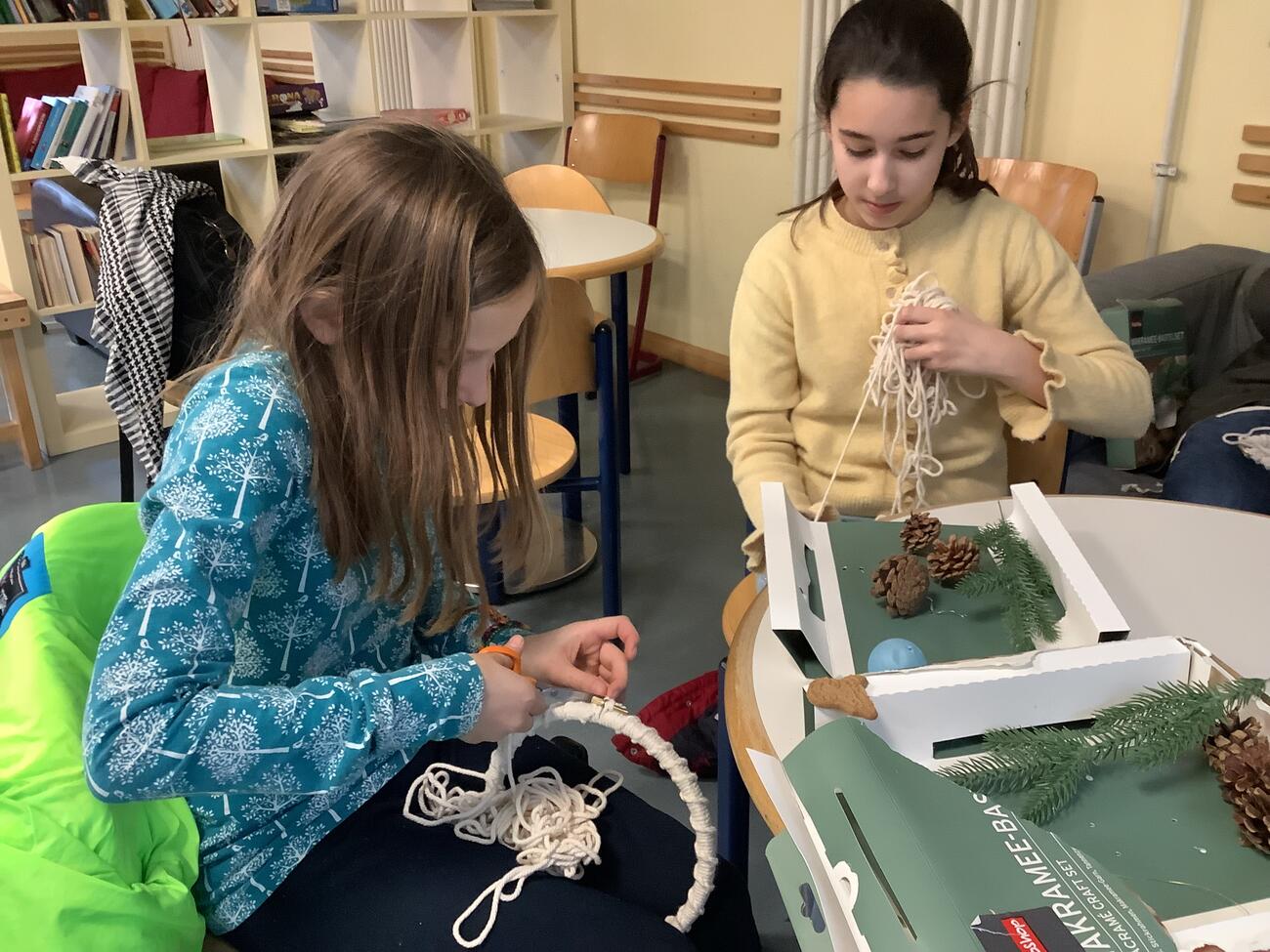 Statt Gartenarbeit haben wir uns in der Winterzeit in unserer Garten-AG kreative Projekte vorgenommen. So arbeiteten wir in den letzten Stunden an einem weihnachtlichen Projekt, einem Makramee-Bastelset, das die Kreativität fördert und Riesenspaß macht. Allerdings gab es dabei zu Beginn Herausforderungen. Die erste Stunde verbrachten wir nur damit, verzweifelt das Knäuel mit dem Makramee-Garn zu entwirren, das sich auf geheimnisvolle Weise verheddert hatte.