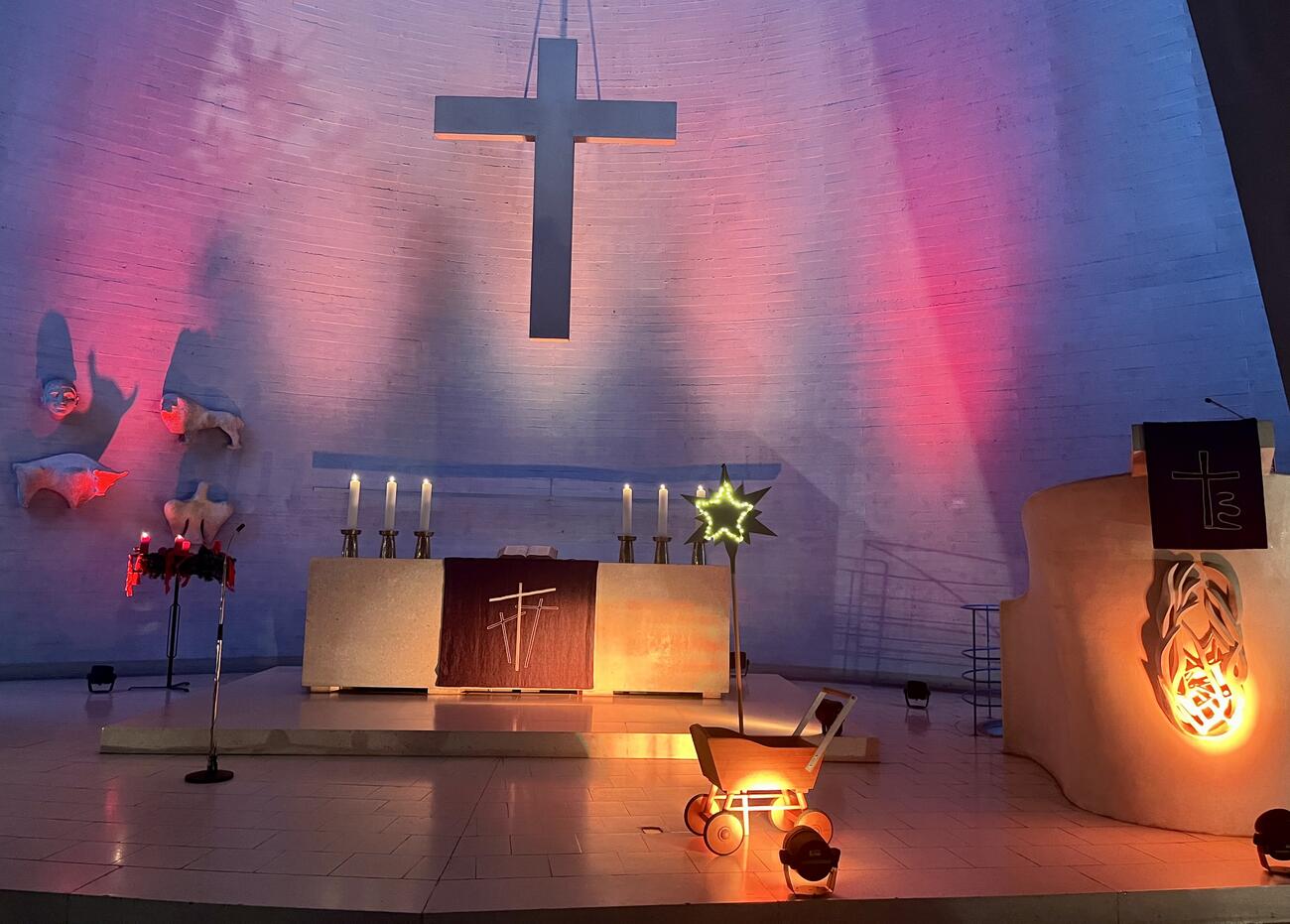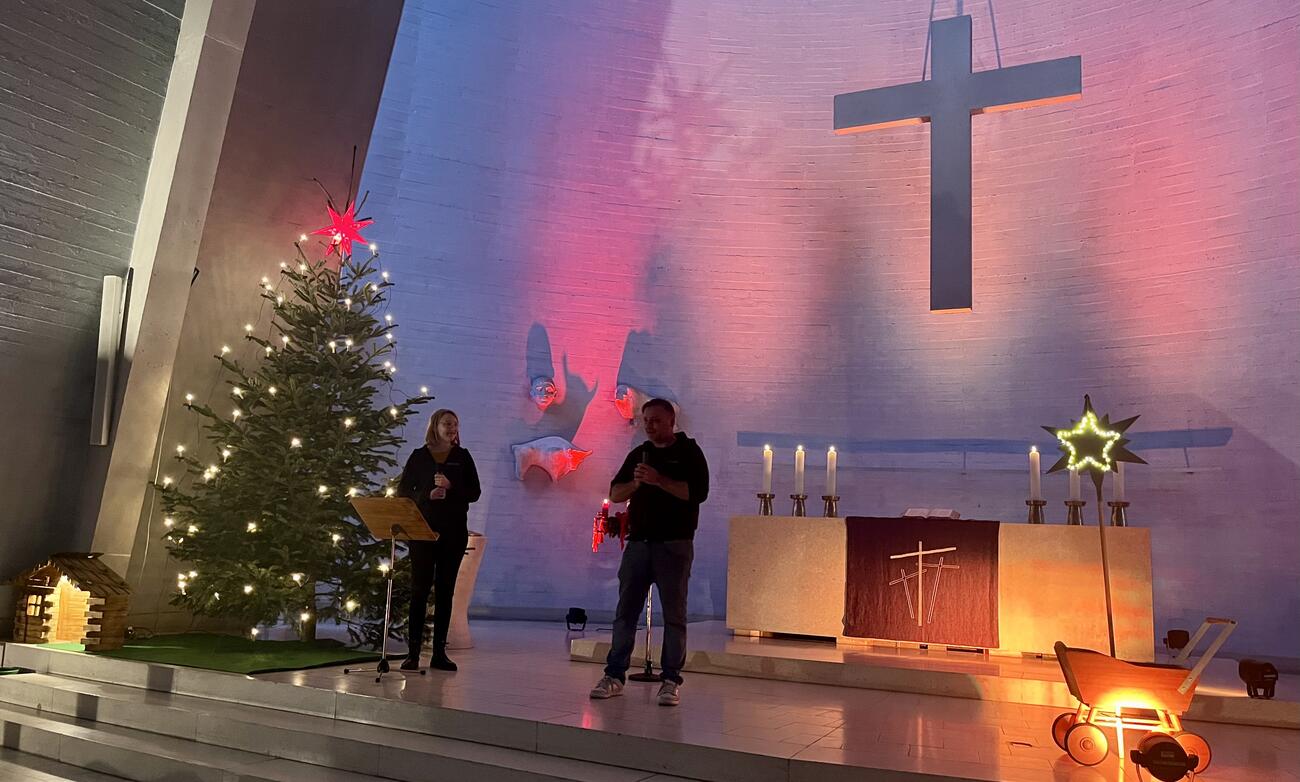 Im Krippenspiel wurde deutlich, dass auch Gott - im Sinne der oben zitierten Liedzeile - großen Mut bewiesen hat, als er durch seine Menschwerdung in der Heiligen Nacht zu uns auf Augenhöhe gekommen ist. Er ist nicht (mehr) da oben, sondern mitten unter uns und lädt uns ein, es ihm mutig gleich zu tun und die weihnachtliche Botschaft des Mutes in die Welt zu bringen.