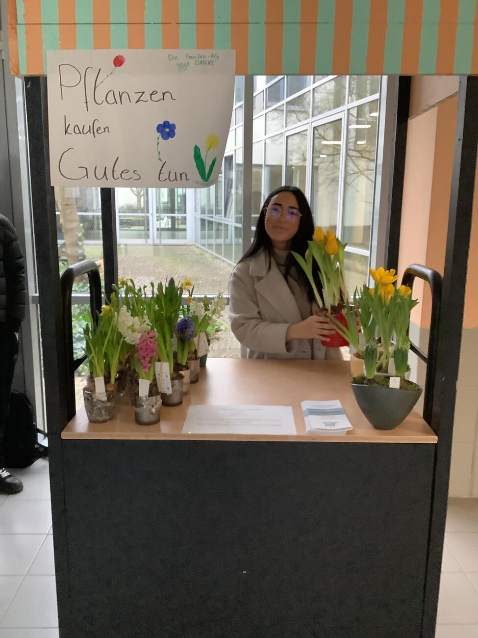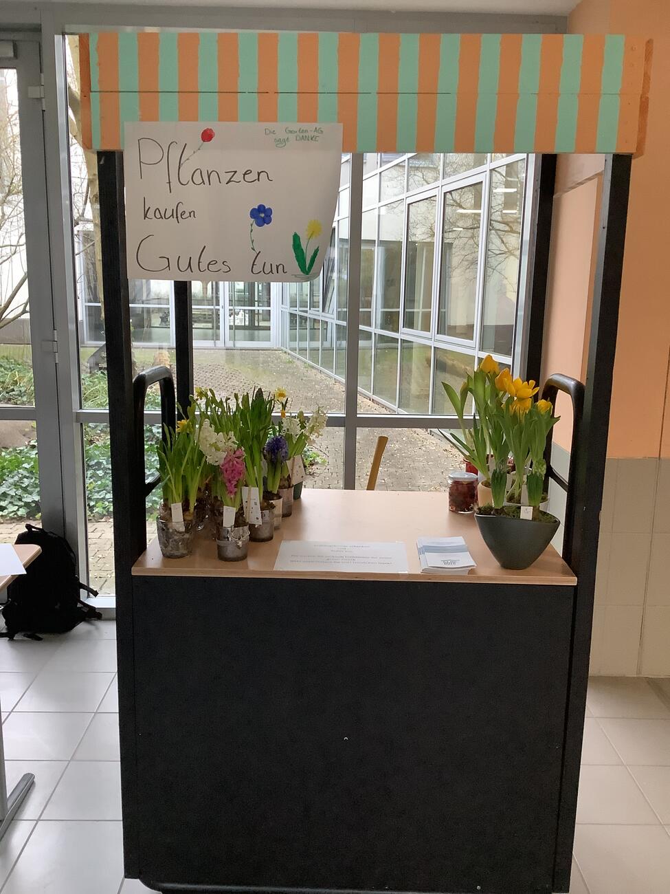 Unter diesem Motto organisierten wir von der Garten-AG den Verkauf von selbst gestalteten Pflanzarrangements aus Frühblühern, die wir am Elternsprechtag zum Verkauf anboten. Tatkräftige Hilfe beim Verkauf leisteten an diesem Nachmittag Frau Treu und die Q2, weil wir nicht selbst vor Ort waren.