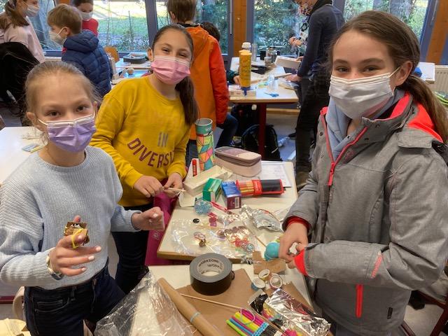Im Anschluss führten die einzelnen Gruppen ihre Klangskulptur vor und erklärten bautechnische Details und klangliche Besonderheiten. Die Möglichkeiten der Klangerzeugung wurden genauso vorgestellt wie die baulichen Schwierigkeiten, die sich teilweise ergaben. Einige Gruppen boten sogar eine kleine musikalische Aufführung, in der sie die unterschiedlichen Klangfacetten vorstellten oder einen rhythmischen Groove vorführten.